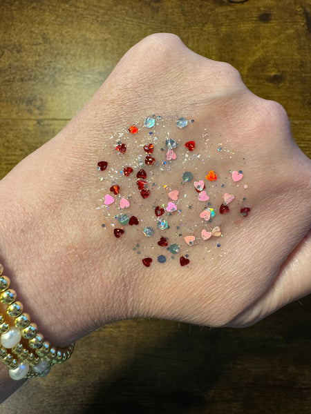 Add some love to your locks with Be Mine Hair Glitter! This Valentine's Day themed glitter features a sparkly silver base with playful pink and red hearts. Perfect for adding a touch of shimmer and romance to any hairstyle. (Don't worry, it's easier to apply than finding a date for Valentine's Day!)