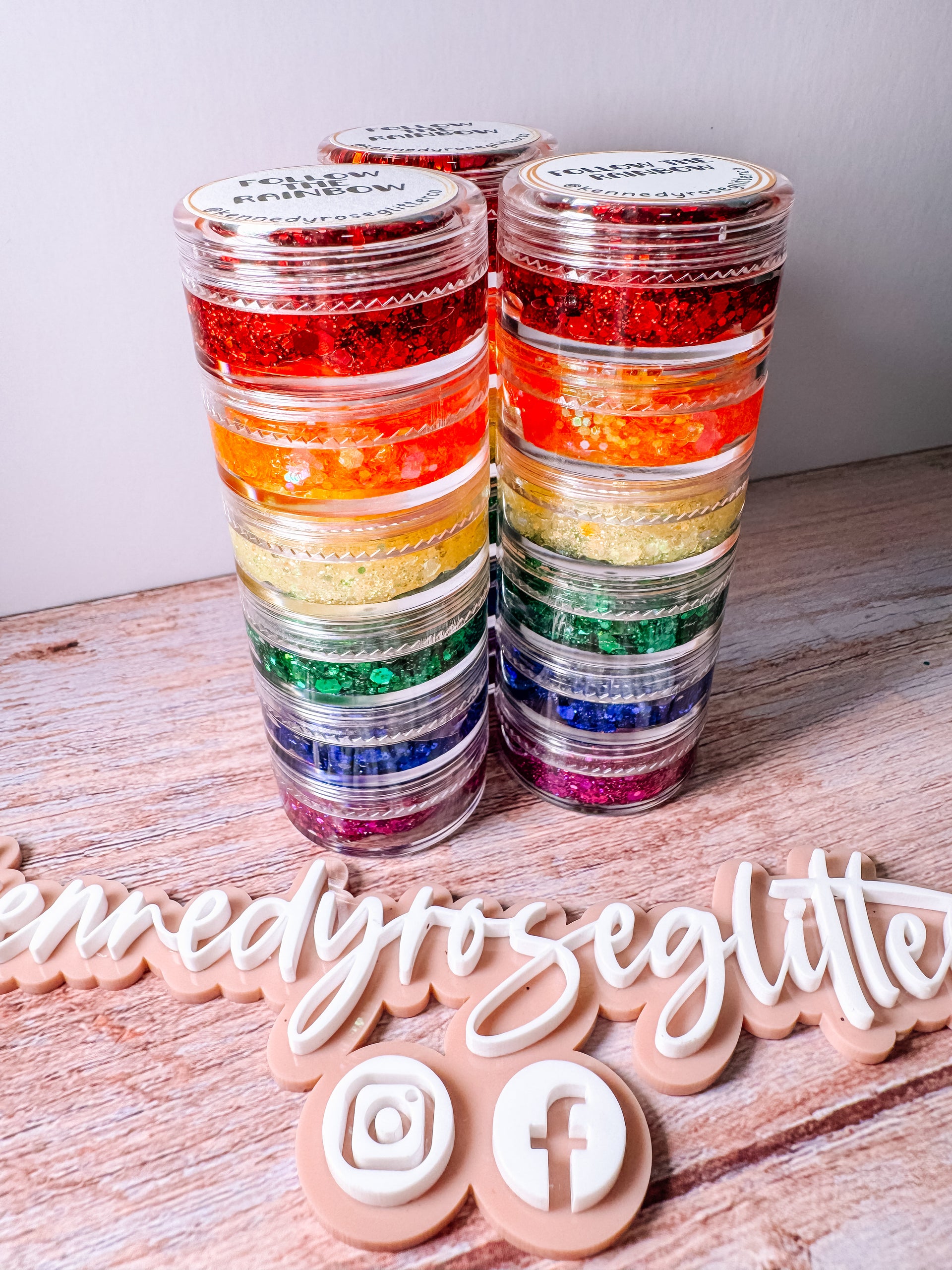 Get ready to sparkle with our Follow The Rainbow Glitter Hair Stack! This stack includes vibrant rainbow-colored glitter hair gel that will add a pop of color and shine to your hair. Say goodbye to dull locks and hello to a fun and playful look. (Get your glitter on!)