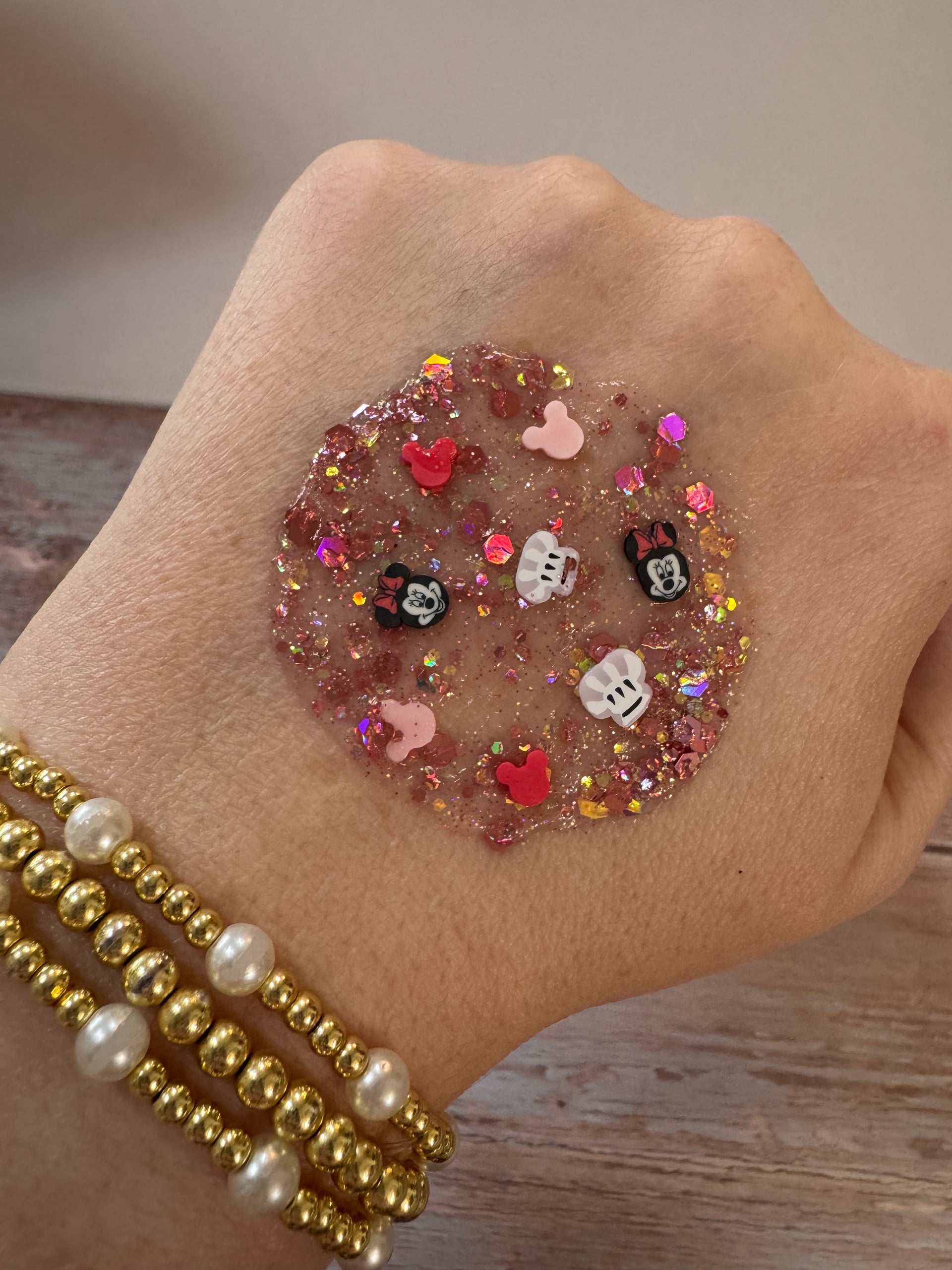 Get ready to sparkle and shine with Oh So Minnie Sparkles Hair Glitter! Perfect for any Minnie Mouse fan, this glitter features a pink base with the iconic red, pink, and white mouse ears, along with adorable Minnie embellishments. Add some Disney magic to your hair and stand out from the crowd!