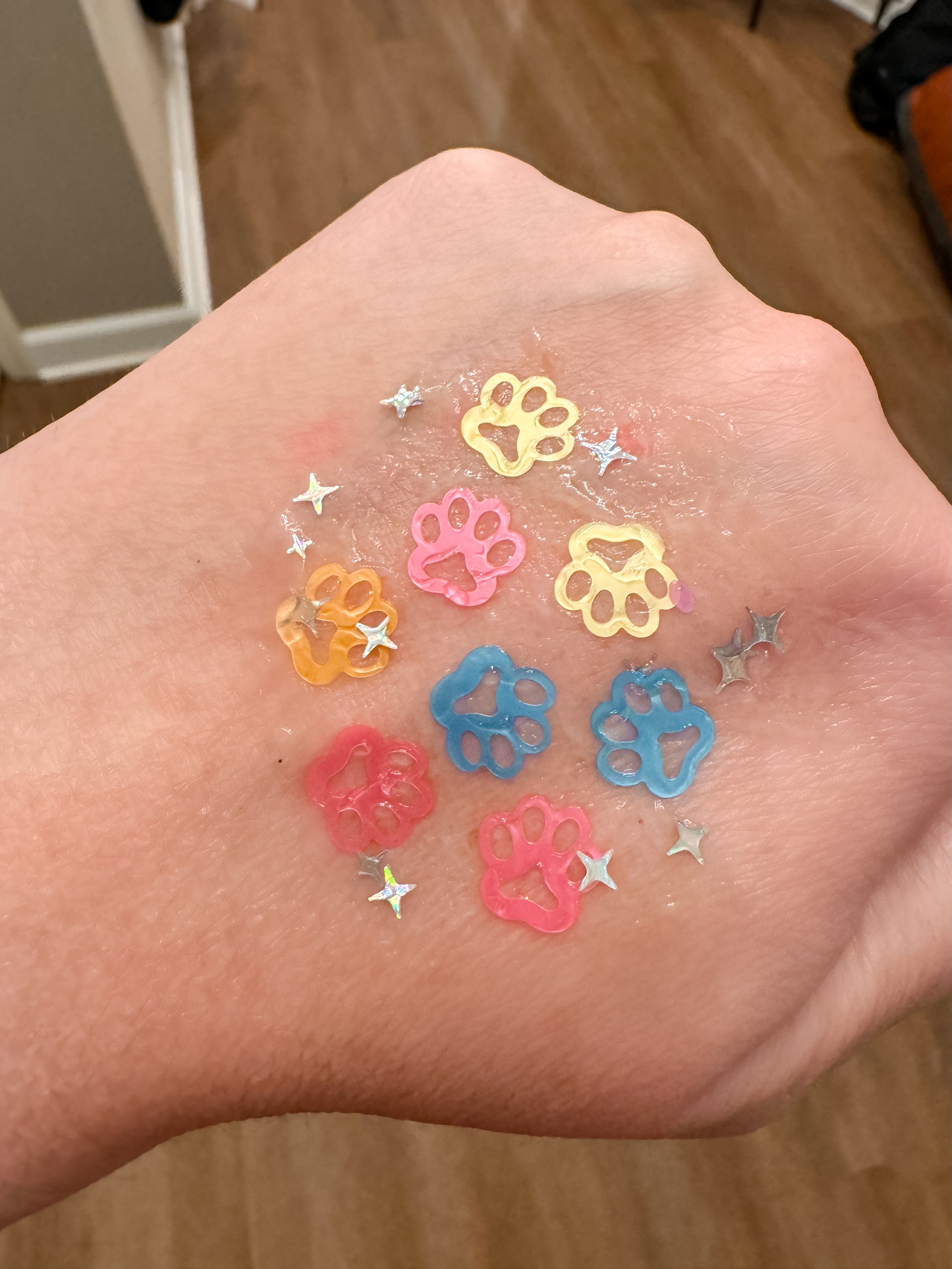 Get ready to unleash your wild side with Paw-sitively Neon! Our bright hair glitter is perfect for fur-ocious looks, with vibrant neon paw prints and sparkling silver. Don't be afraid to let your inner animal shine with this playful and purr-fect product!
