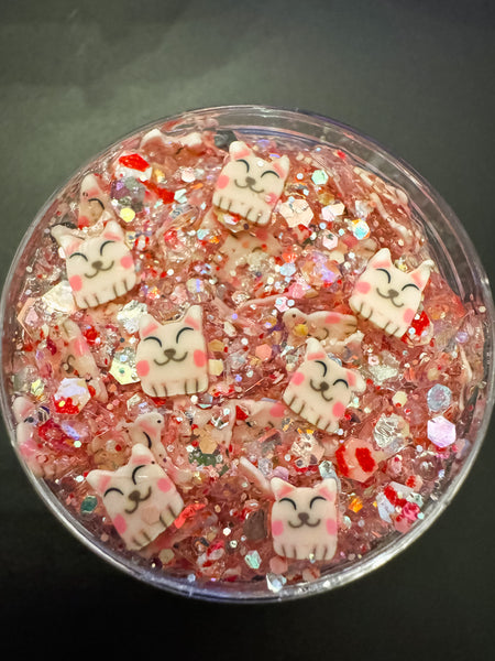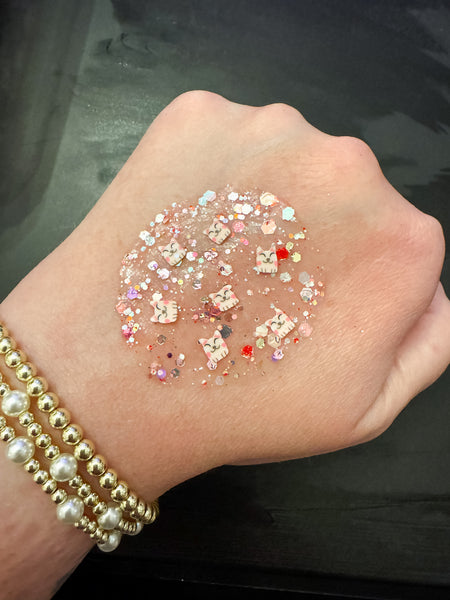 Get ready to unleash your inner feline with You Are Purr-felt Hair Glitter. This cat themed hair glitter features a shimmering base with red and pink glitter accents, along with adorable pink cat accents. Embrace a playful and fun look while adding a touch of sparkle to your locks. Meow-velous!