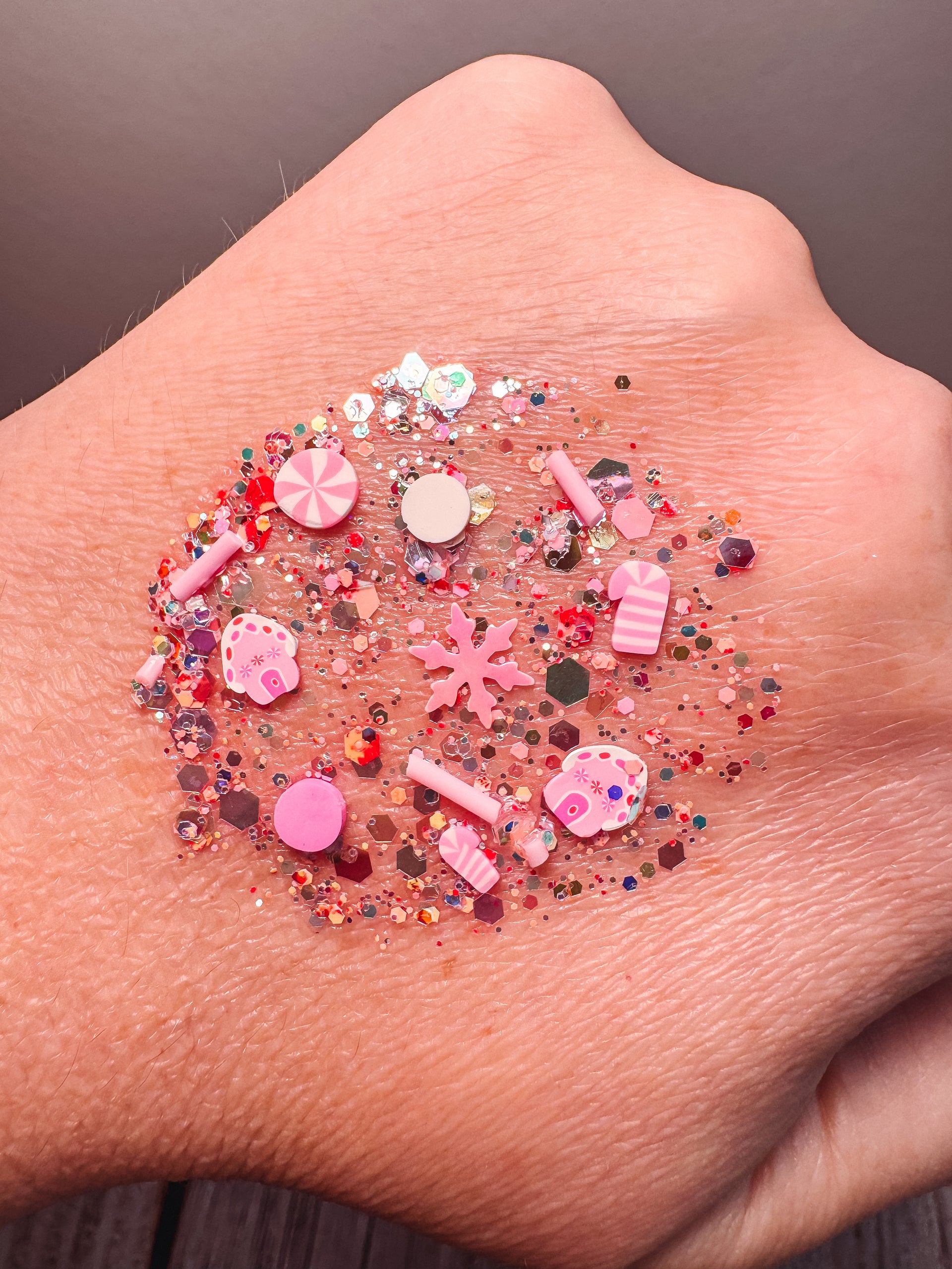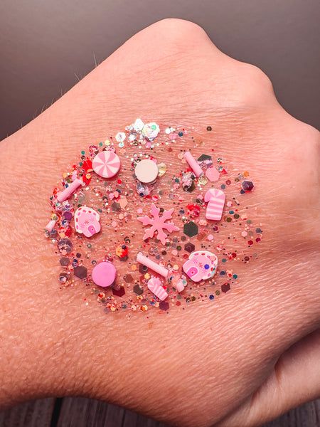 Get ready to sleigh this holiday season with our I'm Dreaming of A Pink Christmas hair glitter! Featuring a sparkling pink and red base, this festive glitter is adorned with pink striped candy canes, stars, and gingerbread houses. It's the perfect accessory for any pink-loving Christmas dreamer!