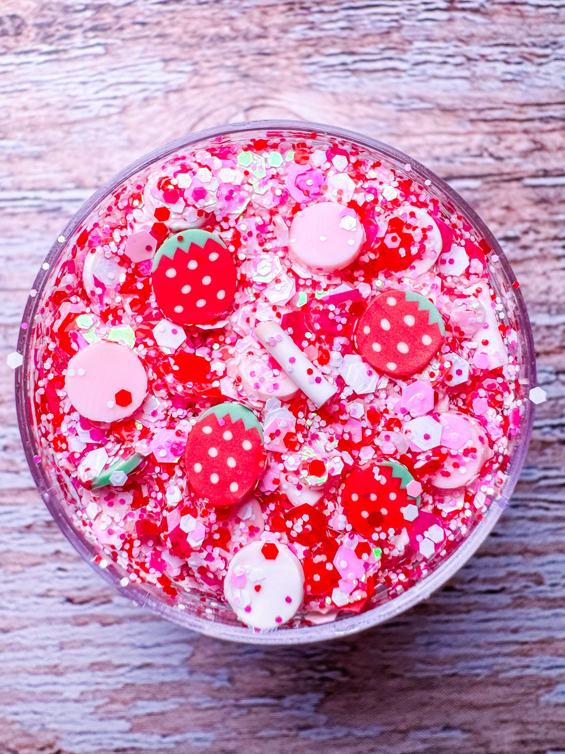Satisfy your sweet tooth and take your hair game to the next level with our Strawberry Shortcake hair glitter! Featuring a pink, red, and white base with charming strawberry accents, this strawberry-themed glitter is perfect for adding a touch of fruity fun to any hairstyle.