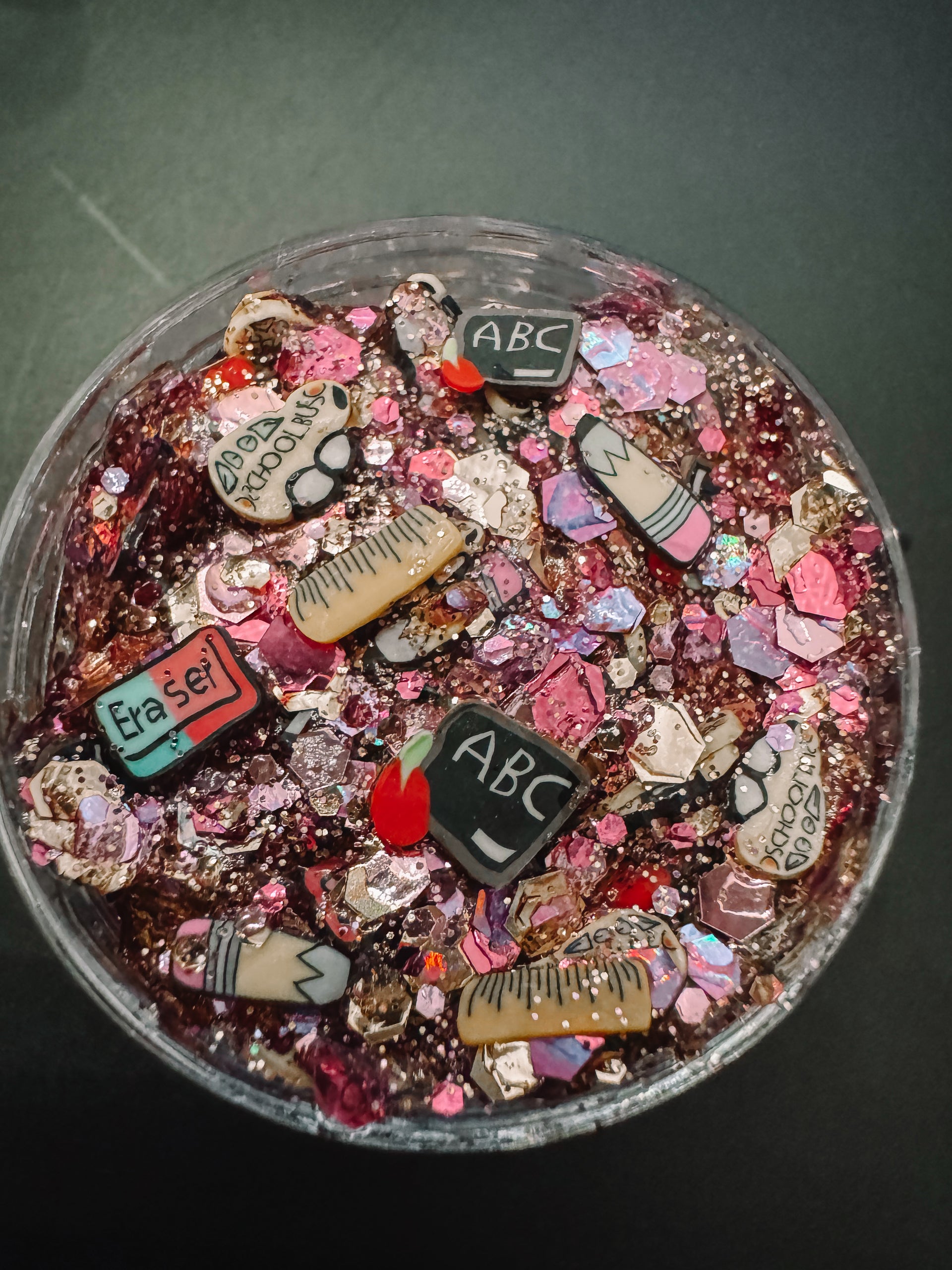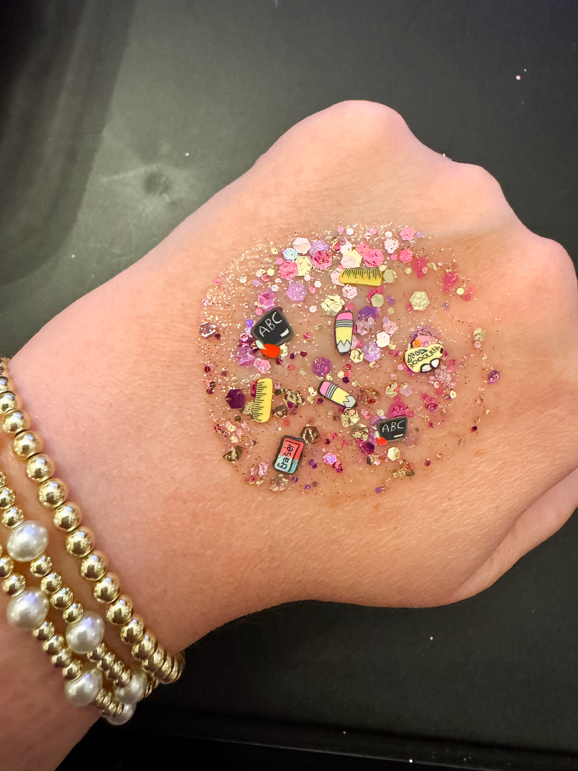 Add some sparkle to your hair with our Teaching Is A Work Of Heart Hair Glitter! Featuring school-themed accents like a chalkboard, pencil, ruler, and school bus, this glitter is the perfect gift for any teacher looking to shine. Show off your teacher pride and make a statement with this fun and unique hair accessory. A must-have for any teacher's collection!
